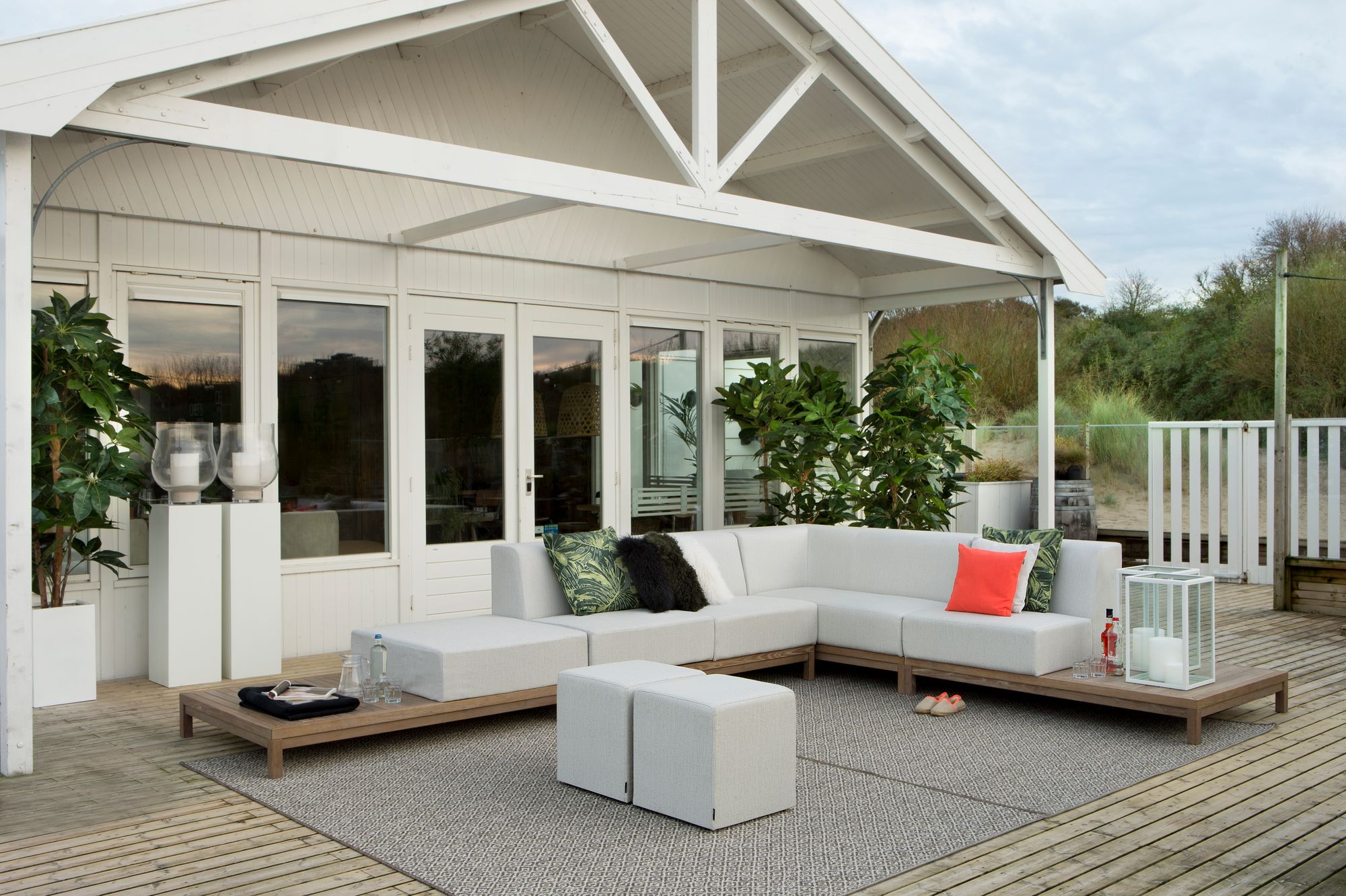 Modular outdoor sofa made of Robinia wood. Tighter view, but the wood makes this lounge