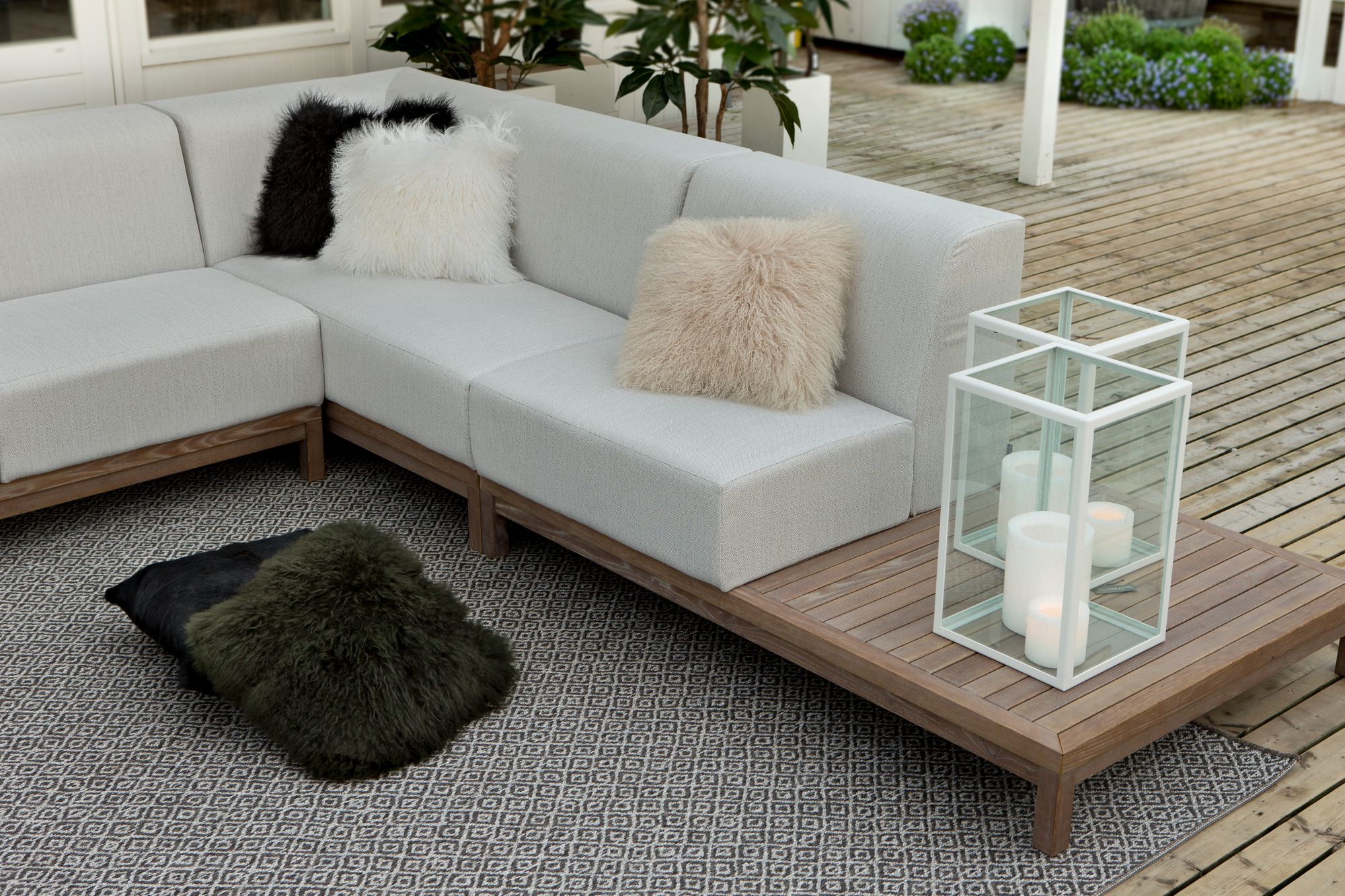 | Material | Robinia wood – Calipore waterproof foam – polyester fibers for the scatter cushions |
