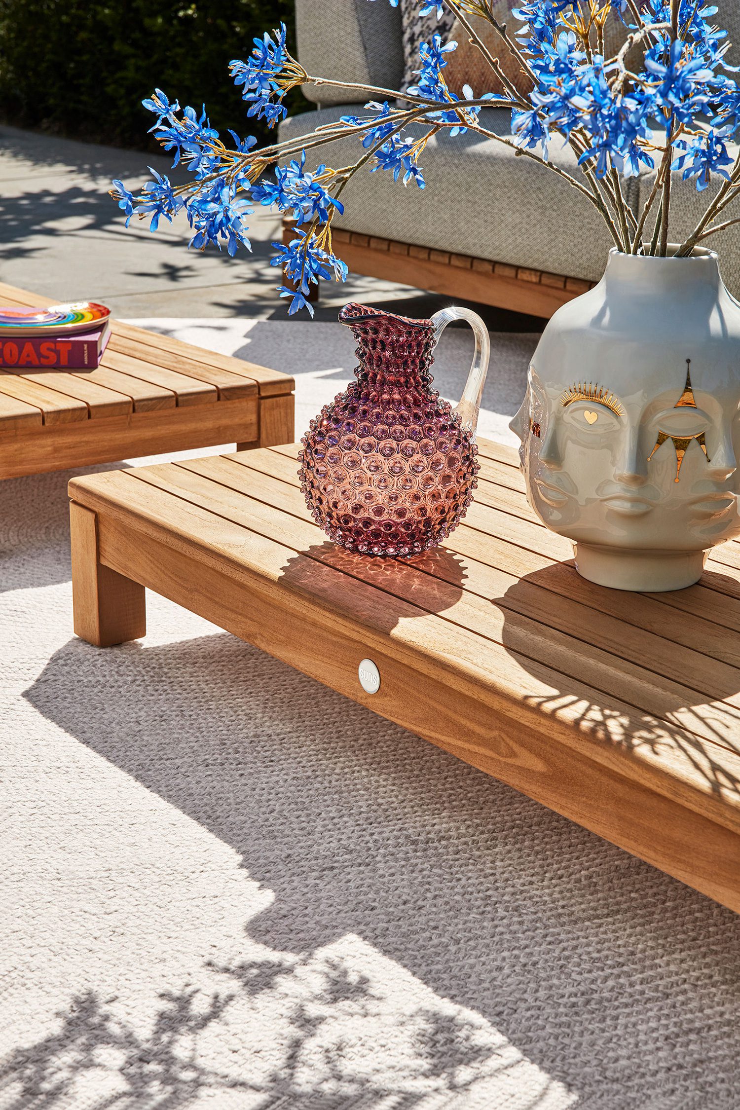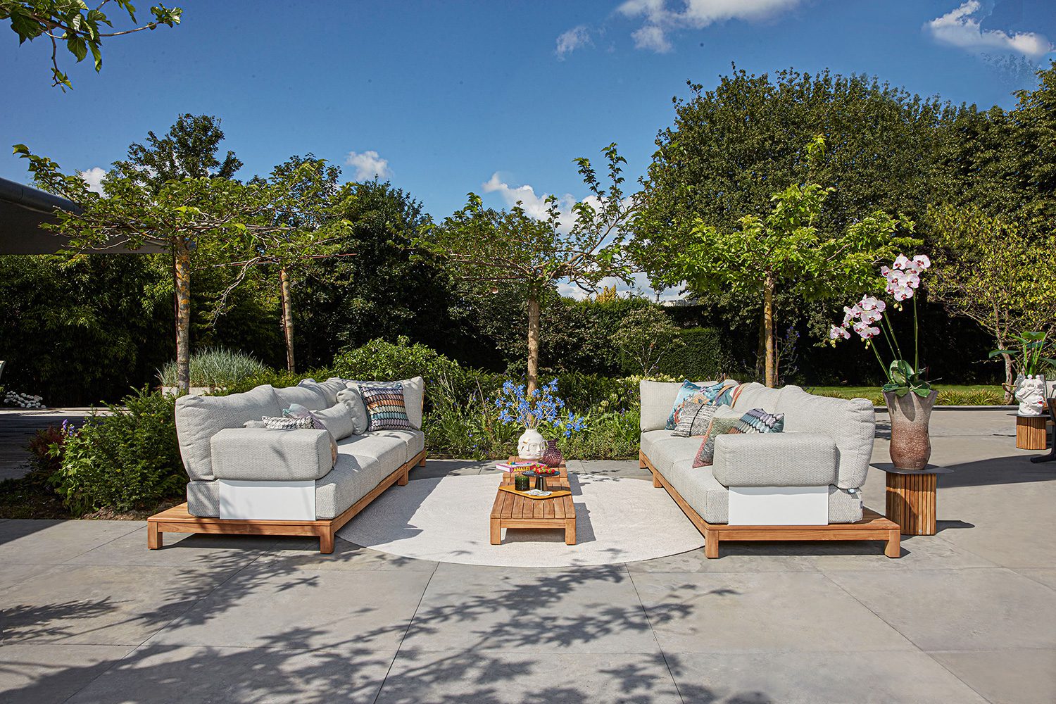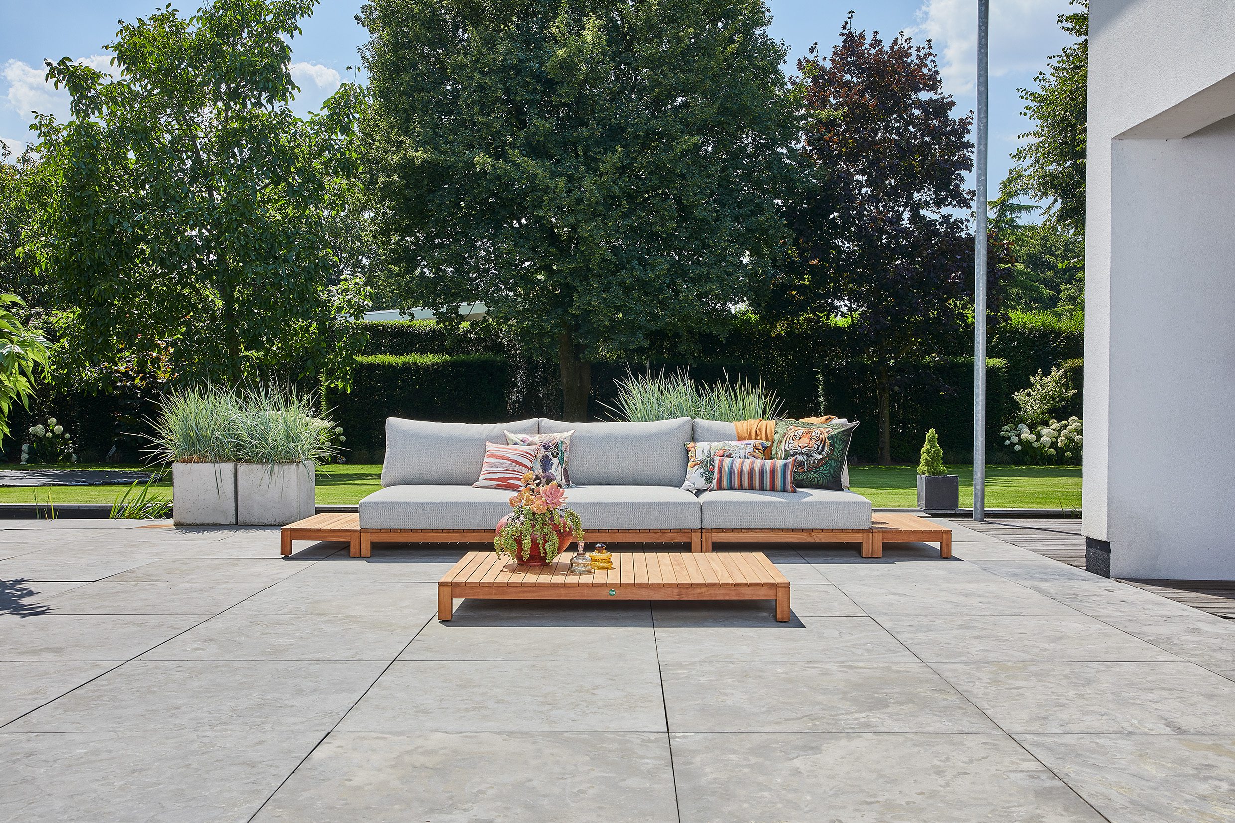 Portofino lounge. A mix of teak and generously filled cushions.