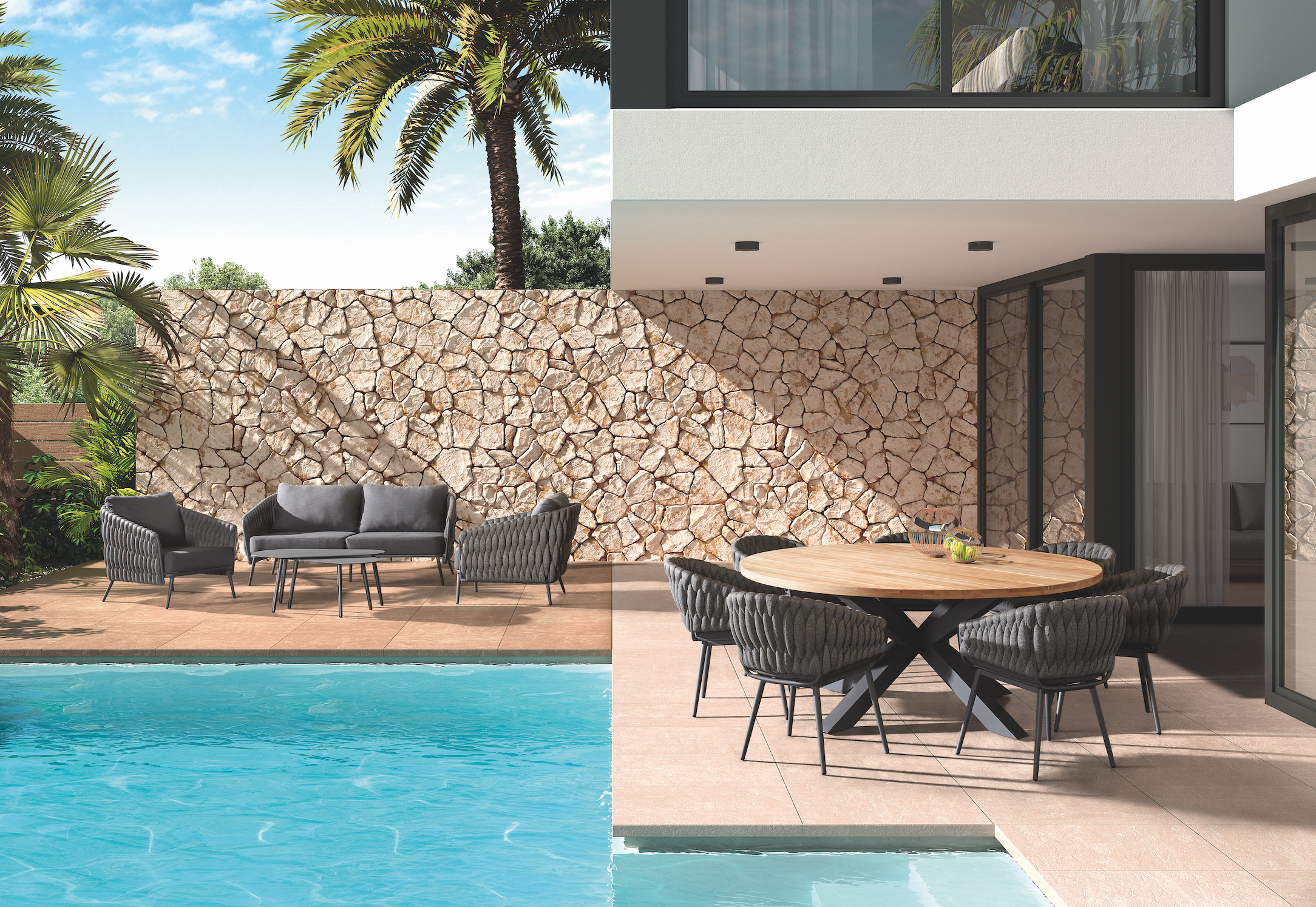 The Vigo chair is a real eye-catcher with its thick sock cord. Also available in a sofa set.